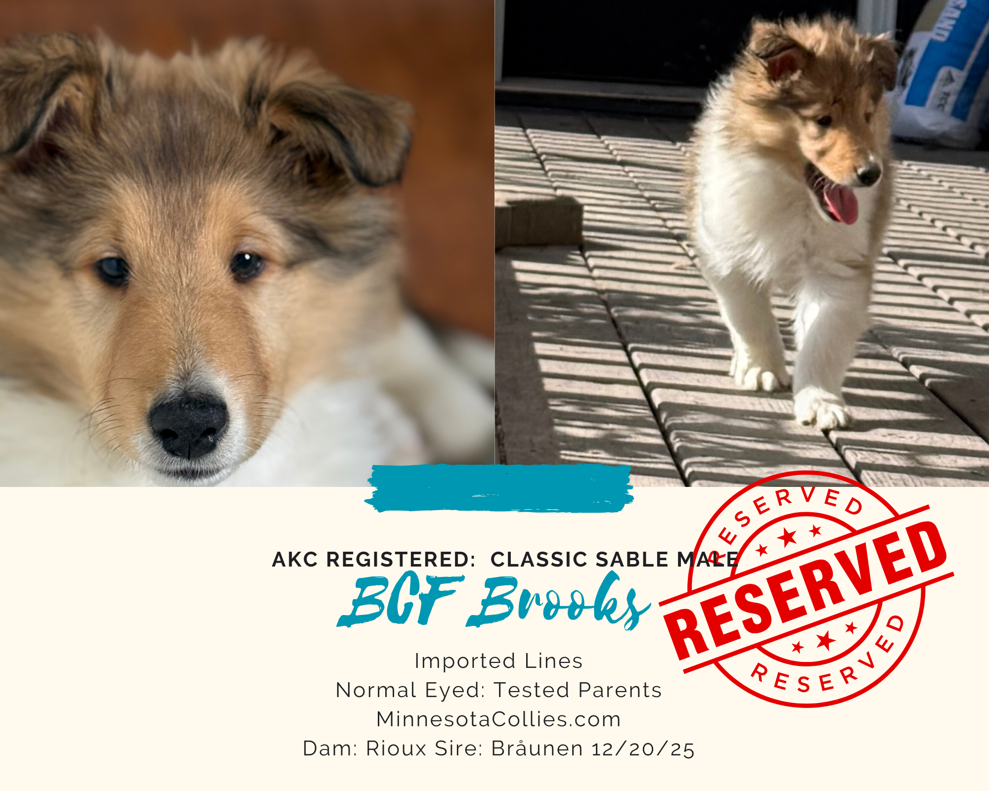 We love our Royal Diamond (Jaxon X Diamond) from the Brady Bunch litter 2016. He is smart, trainable, funny, protective, loving and everything a good Collie should be.